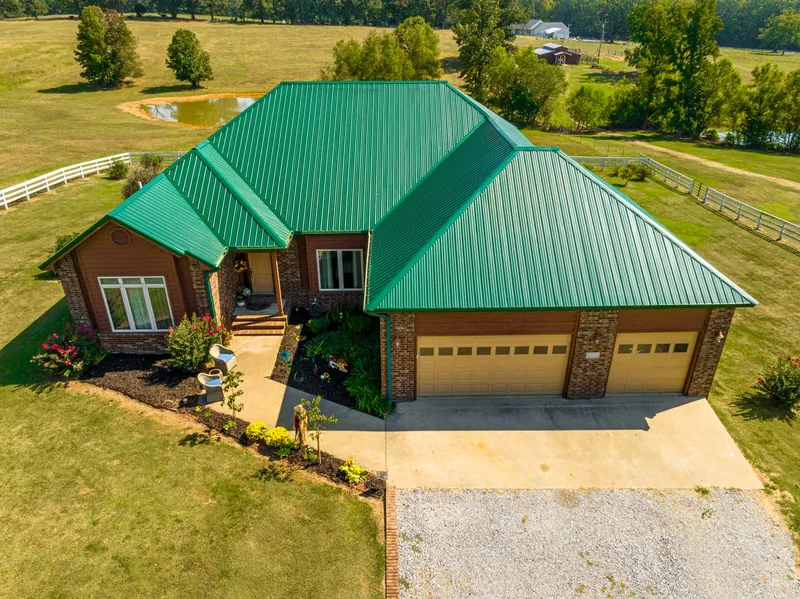 You will have a lovely foyer area; you have 2 bedrooms and a full bath on the left, with a coat closet on the right and another bedroom on the right just before entering the living room. When you enter the living room, you will notice the vaulted oak ceilings and the windows along the entire back wall. You will see a gorgeous gas fireplace that creates a cozy setting for a cool fall day. There are doors leading out to the back deck off the dining area; you have a gorgeous kitchen updated with granite countertops, a gas cooktop, stainless appliances, and a nice bar area! The living, dining, and kitchen area is open, so gatherings are lovely in this home, especially with the deck right off the dining area; you can cook and grill while entertaining and enjoying the view. Maybe watching the kids ride their horses or enjoy the cool afternoons here in the Ozarks! You have a nice pantry and the laundry off the side of the kitchen and the master bedroom. The master bedroom is large enough for a king bed and a sitting area. Off the bedroom, you have his and hers closet and a lovely master bathroom with a walk-in shower, double vanities, and a soaking tub! Off the master, you can access your private, screened-in porch area. Imagine sitting out on a cool, crisp morning, having coffee, overlooking your farm! Well, this could all be yours!! Under this home, you have an unfinished basement area, which could be a storm shelter area or just used for storage!