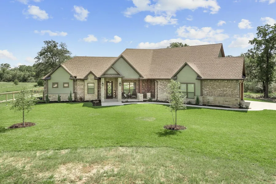 Country living only minutes from town! This custom build split floor plan in the newly developed gated area in King Oaks starts with a beautiful foyer that opens to a vaulted ceiling in the living area and formal dining. The kitchen features Kitchen Aid stainless steel appliances, granite counter tops, custom cabinets with soft close drawer guides and a huge island. The master suite includes a walk-through shower with oil rubbed bronze rain head, stand-alone tub and two very big walk-in closets. Elegant finishes throughout. This home also features two movie rooms, a game room and a massive covered patio area with outdoor kitchen and pool. This home is an entertainers dream!