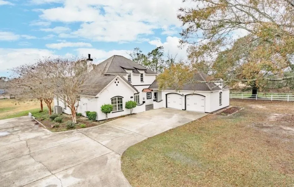 This French-style custom designed residence, located on almost one acre of land, has a perfect setting and tons of unbelievable features. Spacious updated kitchen offers a wet bar, soft close doors, double dishwasher and fridge with 3' double drawers, double ovens and beautiful granite countertops. The entertaining area has 20'' travertine tile flooring. High end finishes throughout. The eye-catching stone wood-burning fireplace will make your home cozy and warm for those cool Southern nights. Solid interior doors, custom round corner drywall, 10-12' tray ceilings and 6' footers. Security system, whole home surround sound, an abundance of storage space, 2-car garage and many more amenities! You won't find another home in this area on a corner lot with the curb appeal and newly remodeled interior. This home is move-in ready and ideal for families, professionals commuting to the coast, Sli...