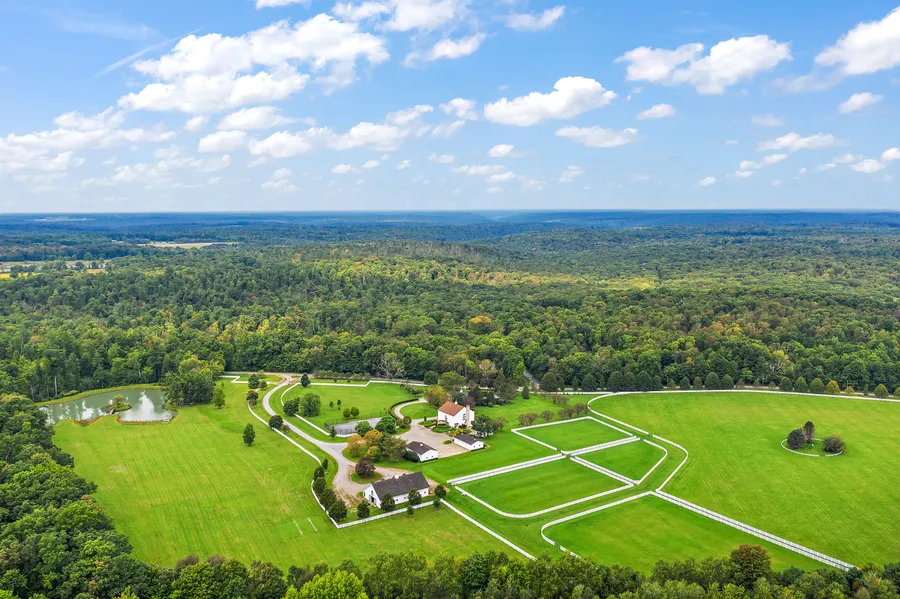 A one-of-a-kind private equestrian estate situated on 40 acres. Drive through the gated stone entry past the 2-acre stocked pond, white fenced pastures and tennis court, to an idyllic family retreat. With a total of five Buildings, encompassing 10 bedrooms in total, this property is perfect for entertaining. The eight-stall tongue and groove Morton Barn has a wash area, heated tack room and bath as well as a laundry area and hayloft above. The 3-bedroom apartment above the Barn, with a wall of windows looking out to the pastures and Allegheny National Forest, can be accessed from a private side entrance or through the Barn second floor.