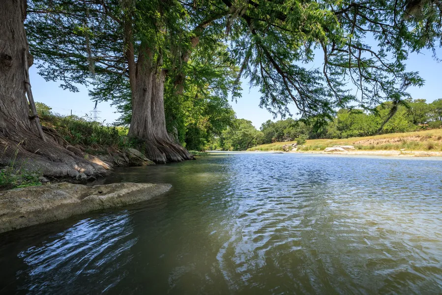 Nestled in the heart of the Texas Hill Country, River Stone Ranch offers an unparalleled blend of history, privacy, and live water access. Spanning 40.2 acres, this exceptional property boasts 650 feet of prime Guadalupe River frontage, where towering pecan and cypress trees frame the crystal-clear waters. Whether fishing, kayaking, or simply enjoying the rivers natural beauty, this stretch of the Guadalupe is a rare and coveted feature. Across the river, a large, protected neighbor ensures lasting seclusion, enhancing the ranchs tranquil atmosphere.