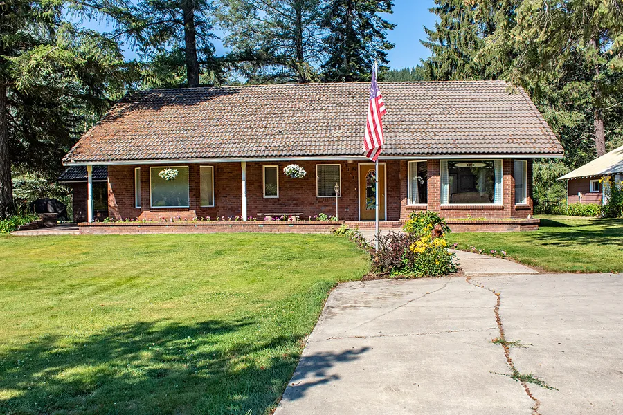 This one has it all! Charming red brick home with tile roof on 40 Acres of mature timber and beautifully parked out yard, orchard and gardens. Located 2 miles from the Pend Oreille River in Laclede, Idaho and just minutes from Sandpoint, it is conveniently located for your recreational activities; boating, snow skiing, hiking and horseback riding. All just minutes for your front door! Property amenities include: A 30x40 shop, an RV barn for 3 RVs, a 3 car detached garage with attached guest quarters (2BR/1BA w/ laundry), an additional 1BR/1BA guest home with large great room, a horse barn with loft storage, a storage shed and just off the main house is a shaded brick patio with fire pit and hot tub room, including a brand new hot tub with 360 degree views. In addition, the kept grounds are on an automated sprinkler system, the home is wired for a generator (included) and there are RV hookups for power, water and sewer. The North Idaho Retreat you are searching for!