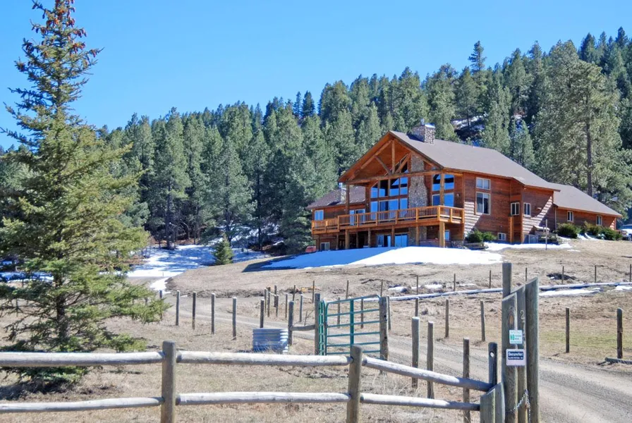 Welcome to ELK VIEW RANCH - a spectacular, custom built 4,322. ft. home overlooking Chromo River Valley with expansive mountain views! The 40.75 fenced alpine acres has water rights, irrigated pastures, pond, aspen groves, tall pines, spruce, fir and two nature trails. Fabulous, open floor plan with new black walnut flooring, gourmet kitchen with granite slab countertops, stainless appliances, designer lighting, Swedish cope log accent beams, aspen ceilings, two story river rock fireplace, stone entertainment center, raised corner wood stove, floor to ceiling windows, custom stone elk entry, master suite on main with corner Kiva style fireplace. The office loft overlooks the great room & has built in work center plus a bonus workout/hobby room. Downstairs boasts a second family room with hand crafted, detailed cedar bar & entertainment center, large game room & antique stove. Circle driv...
