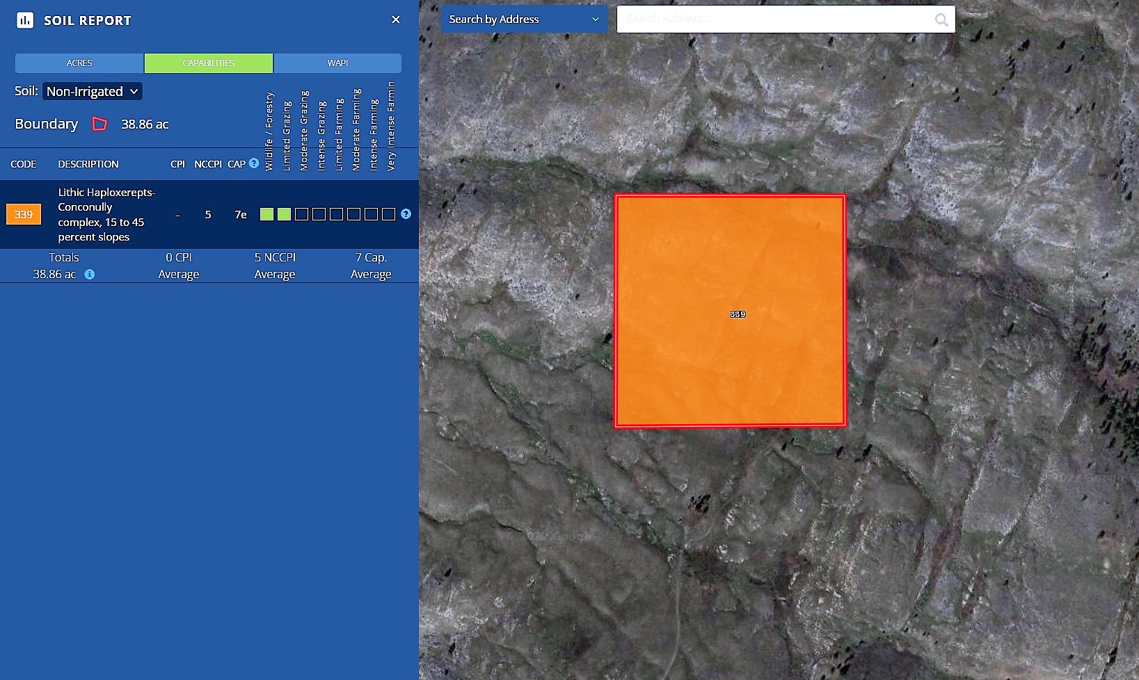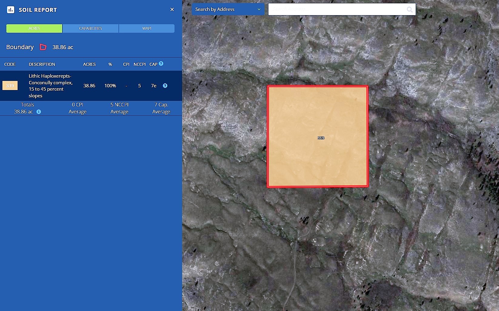 Search for detailed parcel information including; Elevation & Vegetation Maps, Ownership Information, Detailed Parcel Information, Crop History Map, Soil Survey Productivity Data, and more.