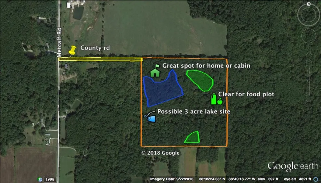 People ask all the time for property south of Iuka; well here it is! This 40 +/- acres for sale in Marion County Illinois is located right in the middle of a lot of big timber and agricultural land. Its one big funnel! The property is really secluded located on an unmaintained County Rd. The seller spend $1,000's of dollars fixing it up with a new culvert. If youre looking to build a nice private house, there is a great spot for a home or cabin in the NW corner of the property and a spot you could possibly build a 3 acre lake. A nice creek is located in the center of the property that the deer travel along to get back and forth from neighboring timber.