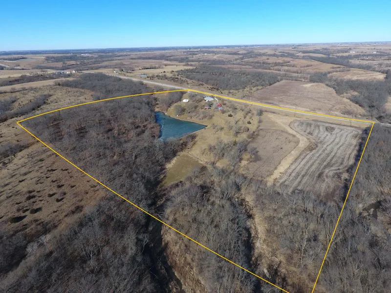 Located on hard surface HWY 2 10 miles East of Leon, Iowa or 7 miles South East of Garden Grove, Iowa sits this approximately 1600 sq. ft. 3 bedroom 3 bath home/cabin with a wood burning fire place. A wrap around deck overlooking a 2 acre pound stocked with fish was recently added. There are several outbuildings in place and two large barns on the property to give the new landowner extra storage for outdoor tools and toys. The upstairs on the home has been newly remodeled with no corners cut during the project. Call land agent Cody Skinner for details.