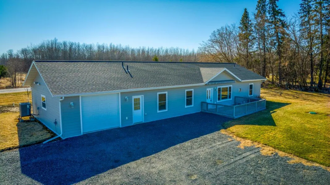 Beautiful newer 3 bedroom (plus a den), 2 bath, one level country home on 40 acres. Features: cherry kitchen, LP Smart Siding, 9' ceilings, great ensuite with large bath, dual fuel with floor heat and a gas fireplace. Beautiful view from the back deck with a retractable awning. The garage is big enough for 2 cars if a larger door was installed.