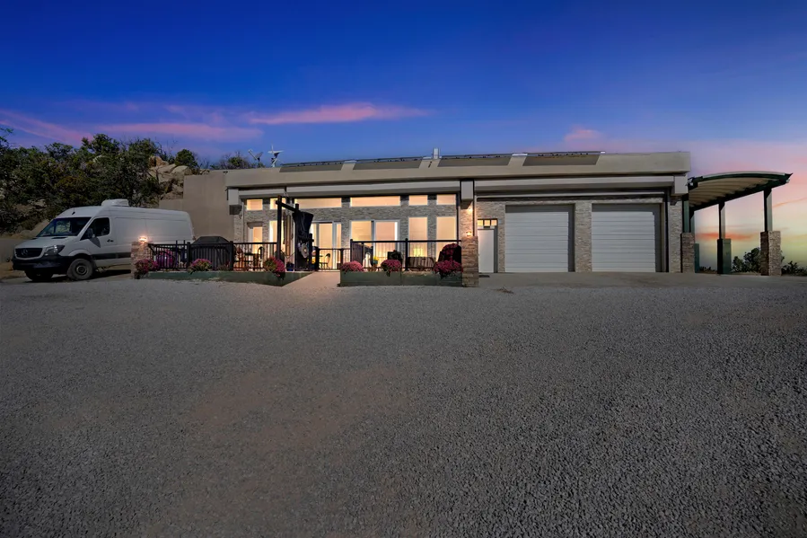 ULTIMATE PREPPER OFF GRID COMPOUND NESTLED HIGH INTO THE MAGNIFICENT BOULDERS..... TWO HOMES ON 40 ACRES. Recent PRICE reduction !!!!! Here you will find 2 Homes located on 40 acres of pristine land, Located near the terminus of Webb Ranch Rd the homes sit high on a bluff that provides a great field of view. The main residence is 2,200 + square foot and is built into the side of the ridge line. The exterior walls are 12" ICF's (forms filled with concrete and rebar) to withstand any type weather or conditions. the home is cool in the summer and warm in the winter with a state of the art Wood stove. SECURITY is accomplished by the entire front glass area having automatic heavy gage metal roll down doors to wall off when gone or in an emergency. An electric gate to enter this home is in place. The solar system is oversized at 12.2 KW at 48 volt DC and complete with a 22 KW propane back up generator. A 1,000 gallon propane tank services all the needs of the compound. There are 3 BR, 2 baths, 2 car garage, studio, laundry room and a separate septic system are included in the main home. The home is powered by Iron Edison, 25 year batteries with an automatic watering system.