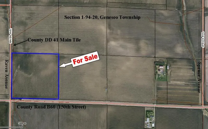 40 acres, m/l, with 37.5 crop acres and average CSR of 68.0 to be offered as a single parcel of land.