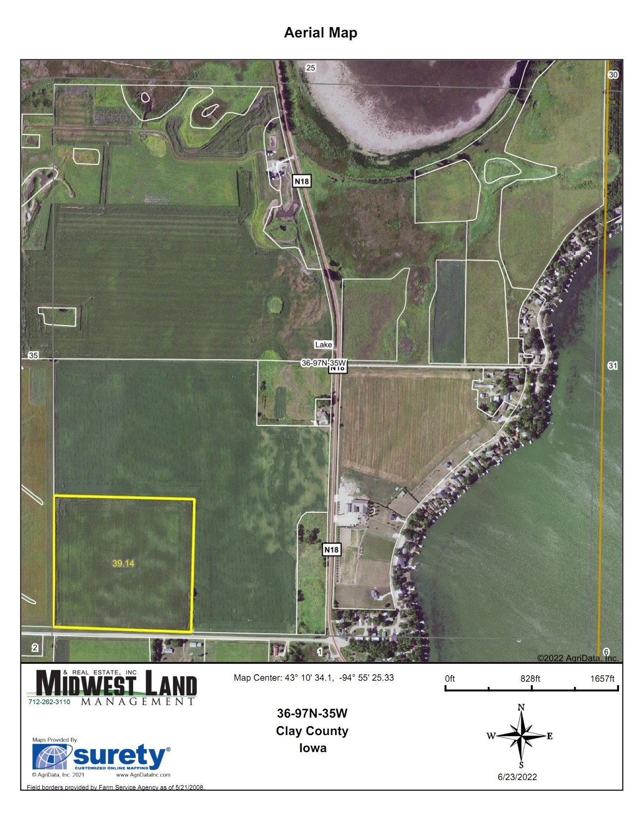Land buyers, don't miss this opportunity to purchase a hard-to-find, smaller tract of highly tillable productive farmland. This nice, square, inside 40 carries a very good CSR2 rating of 89 with only two reputation soil types, Clarion and Nicollet. With 39.14 cropland acres this farm has a corn base of 29.02 acres and a PLC yield of 124. The soybean base is 9.68 acres with a PLC yield of 36.