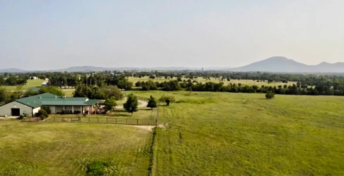 DREAM VIEW PROPERTY LOCATED NEAR THE SOUGHT AFTER WICHITA MOUNTAINS, LAKE LAWTONKA AND IN ELGIN SCHOOL DISTRICT ON 40 ACRES WITH A POND!!! This breathtaking panoramic view is located just a few miles from the Mount Scott area. Have a seat on the large Santa Fe outdoor wraparound patio and just take it all in. This property not only offers gorgeous views, but tons of opportunity. On this land sits a secluded beautiful hilltop metal home that offers approx. 2310 sq ft of living. Open floor plan with ceramic tile, granite countertops, a guest bedroom and bath along with a primary suite. The primary suite has a very nice sized walk in closet, large walk in shower and a large utility room straight off the bathroom. The home includes a 98% high efficiency heating and air unit that is only 9 months old, a Hepa air cleaning filter system, 3 year old roof and Low E windows. Within this 2310 sq ft of living, you will also find a 12???2???x21???11??? gym/media room and a 12'2X12'5office and an additional storage room off the office. These two rooms along with the primary bath and utility room, are equipped with their own 95% AFUE central heating and air unit that is 3 yrs old, 3yr old hot water heater, ceramic tile and their own outdoor access. Now let???s talk about stables. Straight off the primary suite you will find 2040 sq ft of horse stalls and alleyways that has the flexibility to be converted into additional square footage of living space or a separate apartment. There are currently 7 horse stalls that measure out to be 12???x12. The alley way has both gates and electric overhead doors on both the north and south end to allow a constant breeze for cooling as well as concrete floors and electric. On this property you will also find a 24x48 ft (1152 sq ft) RV shop with electric and concrete floors along with a 12x48 ft (576 sq ft) shed roof. The entire property is fenced either with pipe fencing or barbed wire fencing as well as a privacy gate. Now let???s talk about opportunities for this little piece of heaven because they are endless! This could be your primary or vacation home, a horse ranch, a wedding venue, air bnb and much, much, more! Don???t wait long because this unique property will not last long. Give Misty Julian, Broker a call at 580-656-1909 to take a look at your next dream property!