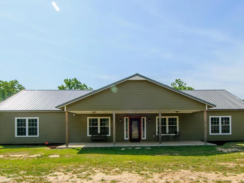 Secluded custom home on 40 acres w/lots of wildlife. Open floorplan. Beautiful kitchen w/knotty alder cabinets, granite thruout. Woodburning fireplace. Amazing hardwoods! Wrap around porch, saferoom, detached shop/garage. Gated entrance & new 7 strand barbed wire fence!