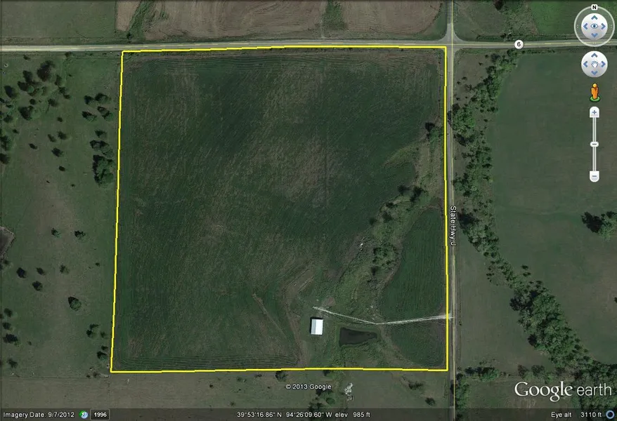 Tillable land for sale in DeKalb County, Missouri - at the corner of Hwy 6 & Hwy J, Amity, MO 64422