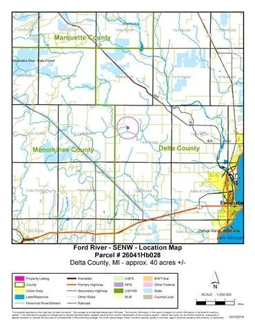 40 acres of land with the Ford River running through the center. Very nice river frontage which winds through with approximately 50% of the property on one side with many places to choose from to build a cabin overlooking the river below. River cuts through the entire parcel giving you at least 1/4 mile of your own river, as well as owning both sides of the river so you won't have to look at neighbors. Remote but very good roads to parcel with many sites suitable for a cabin with great views of the river. Excellent hunting for deer, upland birds, turkeys, black bear and other big game. Parcel is perfect for fishing and kayaking directly from your property. Utilities are not in close proximity and this parcel is suited best for recreational use or off-grid living.