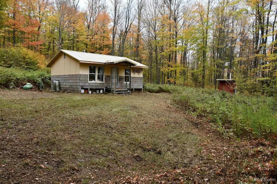 TRADITIONAL YOOPER CAMP! sitting on the back of one of the nicest upland 40 acres you will find covered in mostly Maple. Some lower areas bordering with lots of deer cover. This is an isolated camp with all the traditional camp needs: "bath with a path, propane lighting, propane fridge and range, 3 bunk beds, propane heater and a DRILLED WELL! Well is outside and powered at that location. Could easily be brought into the camp and maybe add a bath? Steel roof and newer windows. All furnishings remain. "Prescriptive" Easement & Deeded easement thru neighboring parcel