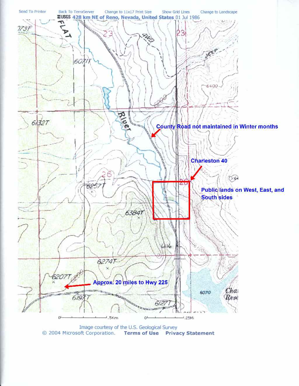 Great Hunting Camp or recreational retreat! Located on a County Road in a Rural Valley approx. 75 miles North of Elko, Nevada. The Bruneau River passes through the property . There is no power in the valley but there is land line phone and the line passes through the property. The road is not kept open in the Winter months and thus the property would also serve as a good snomobiler's camp. These properties don't come on the market very oftern. Bordered by BLM (gov't land) on three sides. Great access and some nice features such as rock outcroppings.