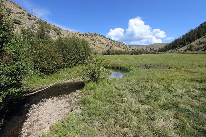 The road into the ranch travels down the picturesque canyon with massive rock cliffs on each side and Corral Creek meandering through the property. As you arrive, the canyon opens and reveals a perfectly secluded ranch setting of sub-irrigated pastures, sage brush hillsides, Corral Creek and a pond at the south end of the property. This ranch and surrounding BLM and Arapaho National Forest consists of rugged rock outcroppings, sub-irrigated meadows, sage brush hill sides, native grass pastures, high alpine meadows, lodge pole pine, blue spruce, douglas fir and aspen forests. There is a current BLM lease in place on an adjacent 100 acres.