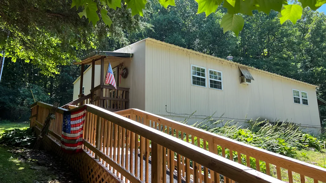 Ranch style home has 2 bedrooms, 1 bathroom with a charming cottage feel created by cedar plank lined walls. This one of a kind home made of insulated freezer panels sitting on 40 acres is very private and acreage is a combination of wooded/cleared land with cattle ready fencing. Property includes a single car attached garage, back screened porch, storm shelter, 30 x 32 barn, 32 x 38 shop and 3 outbuildings. Wood burning stove (operational) was primary source of heat before central air and heat was installed. Yes, it even has a natural spring and creek. Don't miss out as this farm could be the perfect hobby or full operational farm or ideal for a hunter's getaway