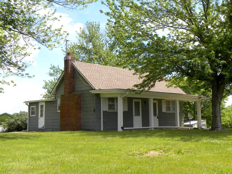 Gorgeous 40 acres with 3 ponds, fenced, lots of mature oaks and walnuts, 2 bedroom farm home with newer roof and gutters in 2012, 30' covered front porch 48X24 all-steel building; FP with insert in living room, updated electrical in 99. Home is need of repairs - the reason for conventional or cash - needs some doors, windows, siding repairs.
