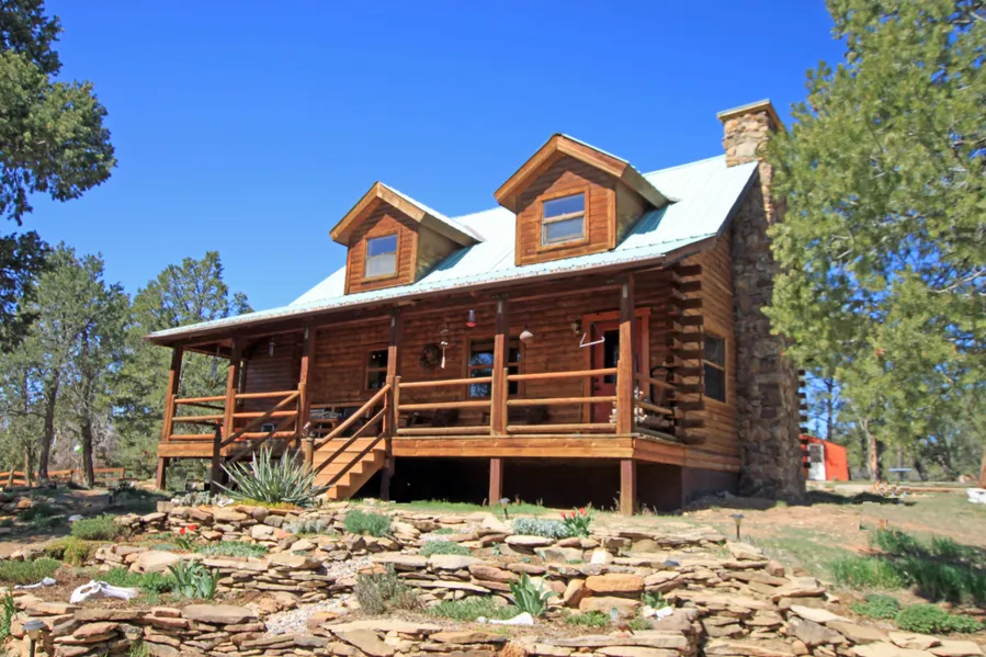 Country comfort fills this picturesque log home hidden on 40 acres of peace, privacy and breathtaking mountain and valley views. Wooded areas and canyons are great for hiking and exploring. Approximately 2 acres are fenced for horses along with a barn and hay storage for 400 bales. With an enclosed chicken coop and large fenced garden area, you can be self sufficient. Inside, the family room is highlighted and warmed by a beautiful stone wood burning fireplace. An open concept country kitchen adjoins. A big covered porch is ideal for your rocking chairs - enjoy the views. A small cottage on the property is perfect for guests.