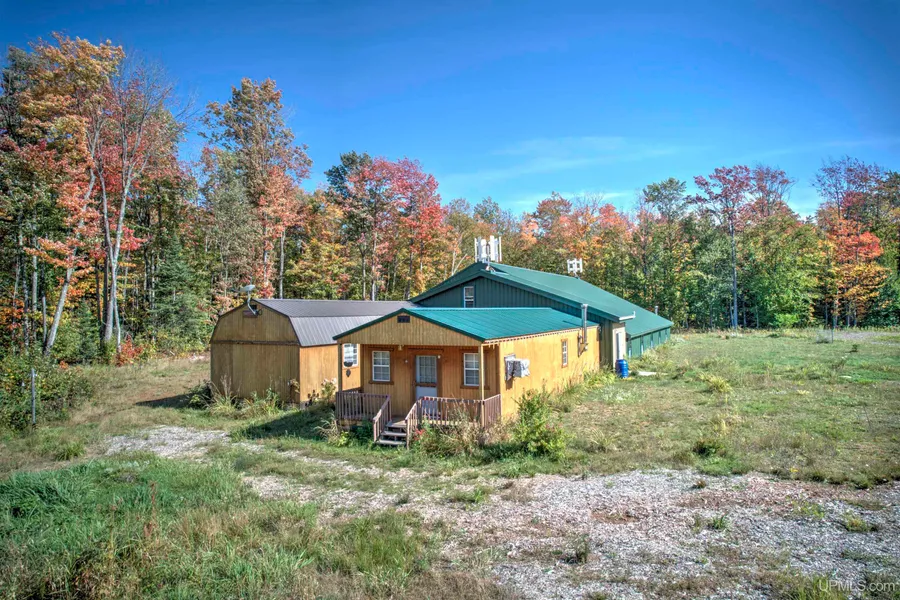 Discover the untapped potential of this unique off-grid homestead nestled on a sprawling 40 acres in Skandia, MI. As you venture into this property, you're greeted by a harmonious blend of woodlands and the gentle murmur of a stream meandering along the parcel's edge. The land is a treasure trove of nature's bounty, boasting an array of berry bushes, nut trees, and fruit trees like apples, pears, plums, and cherries. Imagine cultivating your own garden amidst this natural abundance! Wildlife enthusiasts will be thrilled with the frequent sightings of deer, bear, wolf, and other creatures that traverse the extensive trail systems, making it an ideal hunting lodge. The main residence, set on approximately 8 cleared acres, is a haven of tranquility, enveloped by the serene forest. The property's infrastructure is impressive. It's designed for complete off-grid living with solar and wind power capabilities. Alternatively, you can tap into the grid and even earn from the surplus electricity generated. Storage needs are amply met with a massive 56x60 garage, fortified by a 5" concrete slab, perfect for housing heavy equipment. A greenhouse/guest house has great space and tons of potential, located near the entrance to the property. The home's design is intriguing. Upon entering, you're led through a central corridor connecting the cozy living areas to a spacious front gym/flex space, ingeniously crafted from a 60x80 pole barn. The potential for expansion is evident, with possibilities to add 3-4 bedrooms between the loft space and bonus studio rooms. A 1000-gallon septic tank and rainwater collection system underscore the property's self-sufficiency. A guest cabin, equipped with its own septic, offers additional accommodation options (requires plumbing). Whether you envision this as a hunting lodge, a musical retreat, or a sustainable off-grid haven, the possibilities are boundless. With flexible zoning, this property invites you to dream big and make it your own!