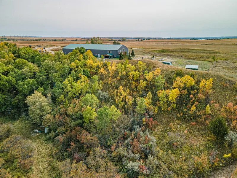 IF YOU'RE ON THE HUNT FOR A REMARKABLE RURAL PROPERTY YOU WON'T WANT TO MISS THIS! 40 acre parcel is located adjacent to Painted Woods Golf Course, 25 minutes from Bismarck and 7 minutes from Washburn. There are 2 plats, plat A is 14.24 acres & includes the home and shops. Plat B is 24.76 acres. The Painted Woods Creek meanders through the rolling hills & mature tree groves making it a HUNTING & FISHING PARADISE! The living quarters are located on 2 levels (totaling 3,968 sq ft) & has stained concrete floors with RADIANT HEAT on the main. There is a dramatic 2 story entry that leads into a open living, dining & kitchen with alder cabinets, walk in pantry and 2 tiered island. There are sliding doors leading to a covered patio ( with hot tub hookups) & fenced yard with a firepit. The master bedroom, full master bath, 2nd bedroom, bath & laundry are also on the main level. An open stairway ...
