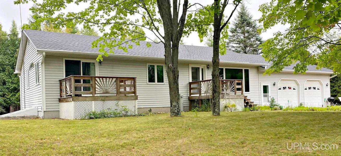 Two homes on 40 acres of wooded land. The main house features a large master suite with walk-in closet, full bath and a south facing deck. An open concept kitchen/dining/living room is great for entertaining. The lower level has access from the garage and from outside and is completely finished with 5 rooms and a full bath. The guest house was used by the seller as a vacation rental and features a full bath and kitchen along with bunkhouse style sleeping. The 36x48 garage is drive through with 10' wide x 9' high OH doors and a workshop. Rounding this property out is a pond, outdoor smoker, fire pit, deer stands and trails throughout the land. An additional adjoining 40 acres is available for purchase located to the south.