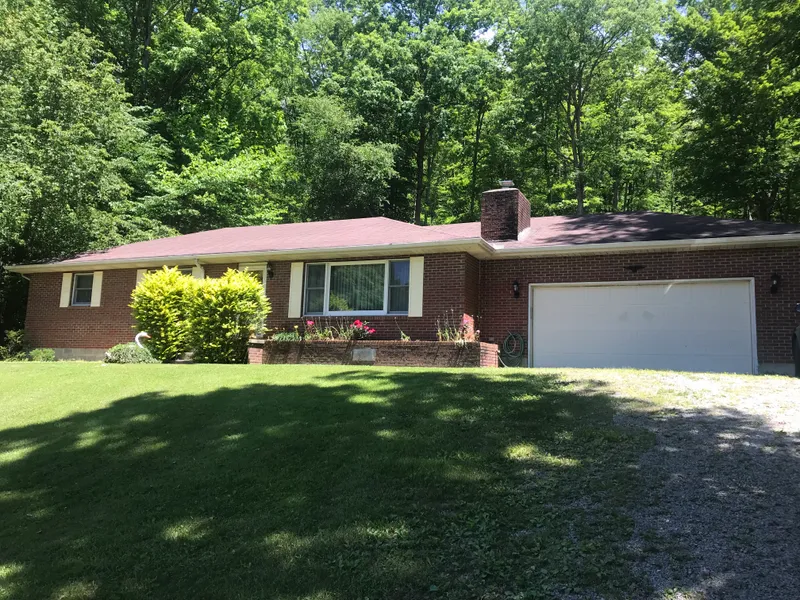 Custom-Built Brick Home on 40 Acres! Discover a custom built 3-bedroom, 2-bath brick home set on 40 scenic acres, offering privacy, functionality, and breathtaking natural surroundings. Thoughtfully designed with hardwood floors, solid wood doors, and rich oak trim. This home exudes quality craftsmanship throughout. The open kitchen and dining area, featuring a peninsula, creates a seamless flow for entertaining and everyday living. The master suite includes a step-in shower, while two additional guest bedrooms are located on the main level. A hall bath with double vanity provides convenience for family and guests. At the back of the home, a sunroom invites relaxation. The fully finished basement boasts a spacious family room with a fireplace, a laundry area, and additional rooms for storage, workspace or flexible living space. A stair chair lift for easy accessibility. Attached garage,. The property offers approximately 11 acres of level land across the road, ideal for crops, pasture, or hay production, with a creek marking the rear boundary. The wooded acreage surrounding the home provides excellent hunting opportunities. Relax on the back deck and enjoy the waterfalls.
