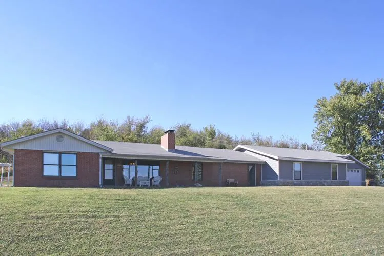 Newly updated (3118 sq.ft.) ranch style home. In 2008, an additional 1000 sq. ft. added. 5 bed 4 bath, 2 living area with dual fireplace, office, zoned heat and air, 2 car garage attached Home located on hill side with panoramic view looking east for miles. Property located at the end of dead end county road with no drive by traffic. 15 minute drive to Bartlesville, 30 minutes south to Tulsa Metroplex. Horse facilities consist of 1 show barn (36 ft x 64 ft), 3 foaling stalls (12 ft x20 ft), 4 12 ft x 12 ft stalls. Barn is heated with propane, wash rack with stocks and hot water, tack room with sink, several frost free hydrants, 1 hay barn (44 ft x 18.5 ft) with electric and water. East end has lined interior walls for an extra stall location if need be. Eight foot tall steel round pen plus metal pipe dirt arena, north to south 272 ft and east to west 127 ft. Five paddocks with woven...