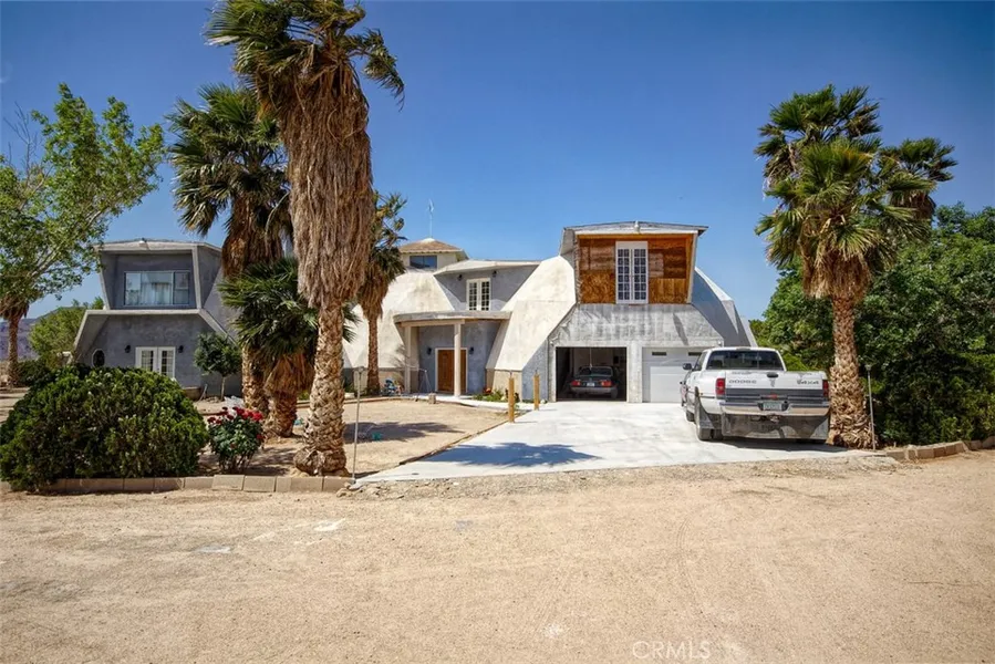 This is a RARE opportunity! This unique dome home is a registered historical landmark. It has over 9000 sq. ft on 40 acres fenced! 4 domes & 2 towers, plus HUGE attached garage! 4 massive bedrooms, each with their own bath, plus 1 guest bath downstairs. Large living room, separate family room, formal dining room, library and game room. Large kitchen with lots of counter and cabinet space. Laundry room and 3 storage rooms. 4-car garage with 1100 sq. ft. above the garage for work or craft room. Driveway wraps around the property. 5 evap coolers for summer. Enclosed front porch, Fire pit, and large outside deck. 10 acres fenced with 900 fruit, nut & shade trees - and full water rights. Playground in the side yard, plus open yard on all four sides of the property. There is also a 2 BD, 2 BA manuf home that could be a rental unit. Additional building in back currently used as a workshop with fully functional bathroom. This property to be sold as is - work is continuing inside and outside for improvements and upgrades. This is TRULY a unique property. Owner planned to have a bed and breakfast and nursery. However, possibilities are endless. Could also be an RV park with plenty of room to park more than 100 RVs - income opportunity! Very near the 40 freeway, less than 1/4 mile from Newberry Road. Association Amenities: None # of RV Spaces: 0 Special Features: BC,BN,CC,PTRY,SK,SH,WK,OB,NONE Frontage Type: Dirt Road Lot Location Type: Standard Location Landscaping: Drip Special Features: Two Homes on a Lot # of Attached Spaces: 4 # of Detached Spaces: 0 Construction Materials: Dome