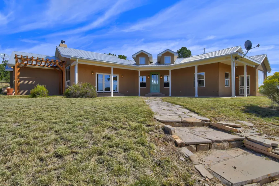 Country living at its finest! Enjoy the spectacular views of rolling hills and Manzano Mountain sunsets from this custom ranch home on 40 acres. The open flowing floorplan, high ceilings and many windows provide abundant light and space for a relaxed and comfortable lifestyle. The kitchen is a gourmet's delight featuring a commercial grade gas range, double oven, range hood and sub zero refrigerator. Storage space abounds with beautiful custom wood cabinetry, and ample workspace is provided by granite countertops and an island with prep sink. The primary suite is spacious with a large walk-in closet and private patio. Situated on the opposite side of the home from the guest bedrooms it offers privacy and seclusion. The primary bathroom sports a snail shower, claw foot tub and double sinks.