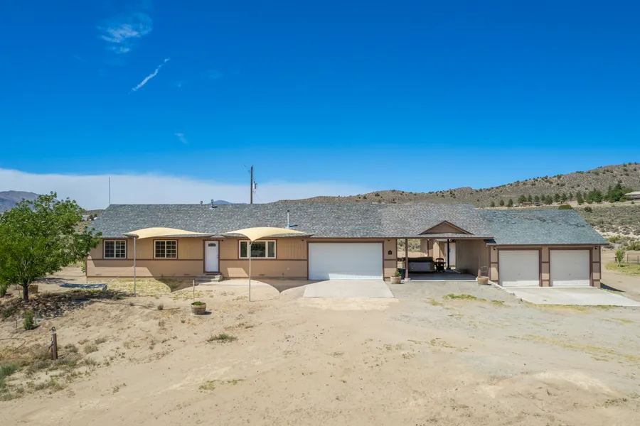 The home has had many upgrades, both bathrooms have been completely remodeled and laminate and wood floorings have been added throughout the home. The pellet stove offers great heat on cold winter evenings. All three bedrooms are good sizes and well laid out. There is plenty of space to store your vehicles and toys with a 4 car garage (separated into 2 two car garages) and two carport spaces as well as plenty of space to park an RV or build an RV garage. Both garages have work benches and each one has a large attic with lighting. You can enjoy farm living with a horse barn, chicken coop, and a green house filled with vegetable beds. There are plenty of fruit trees (pear, peach, plumb, apricot and apple). There are 3 additional storage outbuildings, one of which has solar panels to allow for electricity in the shed. Should you want to adventure a little further from the property Tahoe skiing, biking and hiking as well as pyramid lake are all located within a short drive.