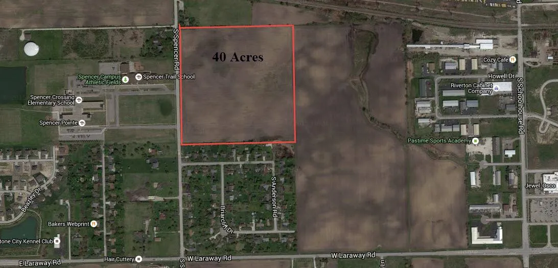 This is a great short term or long term investment opportunity. Laraway road is one of the more active corridors in the Chicago region for single family residential construction. Nice square 40 acre parcel on Spencer road in New Lenox. Just north of Laraway Road. Potential for residential development. Utilities are nearby. Spencer Trails Grade School campus is on the west side of Spencer Road. Metra station is only 1.3 miles to the west. Easy access to shopping, expressways, and entertainment.
