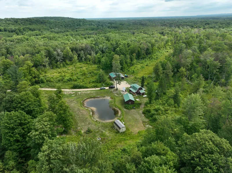 This unique hunting cabin, nestled on 40+/- acres in Thompsonville, MI, offers seclusion, privacy, and an abundance of wildlife. Bordered by over 50,000 acres of state land on the north and east sides, this property presents endless opportunities to enjoy the outdoors in all four seasons. The seasonal road that brings you to the property entrance connects to multiple trails systems for both snowmobiling and trail riding. The 1,100 square foot, 3-bedroom, 1.5-bath cabin, has been recently remodeled and has all the comforts of home. The master bedroom provides access to a small porch, while upstairs, two cozy bedrooms and an open loft provided plenty of room for your entire party. The site boasts two pole barns featuring concrete floors - a 2024' pole barn and an insulated 3040' pole barn with a 1240 lean-to. The property includes a pond stocked with Bluegill, 3 permanent hunting blinds, ...