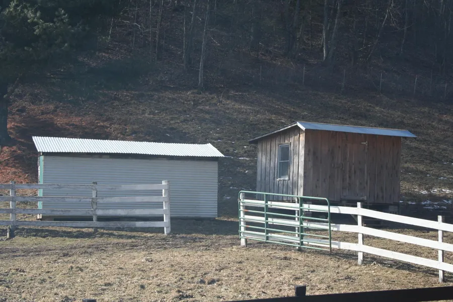 This 40 acres has road frontage and extends back a quiet valley between two ridges. A 3500 sq. ft. barn, and a 800 sq. ft. shed are also located on the land. A mountain stream meanders from the rear of the land to the front. The land is level along the state highway and has sloping land along both sides leading to the rear lines.