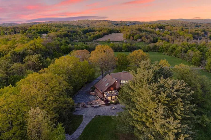 Back on Market! Enjoy Mountain Views and tons of privacy in this custom, contemporary Estate full of possibilities. Whether you are looking for a private escape or a unique development opportunity this fully upgraded home sits on acres of space awaiting for expansion and exploration. At the center of the property, you will find a primary home with luxury amenities such as commercial-grade kitchen, designed by Poggenpohl, a stunning 18-ft hearth stone fireplace, 20 ft ceilings, exposed wood beans, and white oak wooden floors. Natural light streams through the many windows, including the skylights and floor-to-ceiling windows in the main living area, and amazing views! There's over 3500 sq ft of outdoor entertaining space, with a spacious stone patio, fire pit, and a fully equipped built in outdoor kitchen! No matter what your passion is, hunting, fishing, equestrian, or development, this lovely New Jersey Property can be adapted to fit your plans! So many options available!