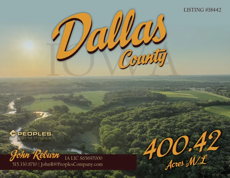 Nestled along the banks of the Racoon River and set with a truly remarkable landscape, this one-of-a-kind 400.42 acre m/l property is located only 20 minutes from the Des Moines Metro. Located northwest of Redfield and off County Highway F59, this is a rare opportunity to own a large, contiguous tract of Dallas County land. This farm is the ultimate lifestyle property with scenic building sites, secluded recreational acres, Raccoon River access, and high-quality tillable acres.