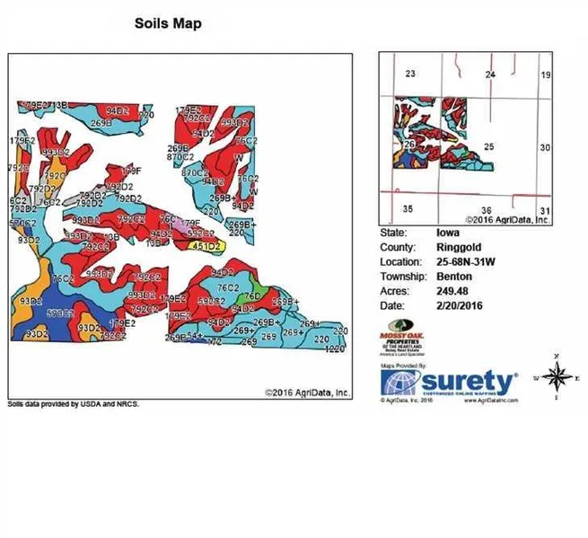 Search for detailed parcel information including; Elevation & Vegetation Maps, Ownership Information, Detailed Parcel Information, Crop History Map, Soil Survey Productivity Data, and more.