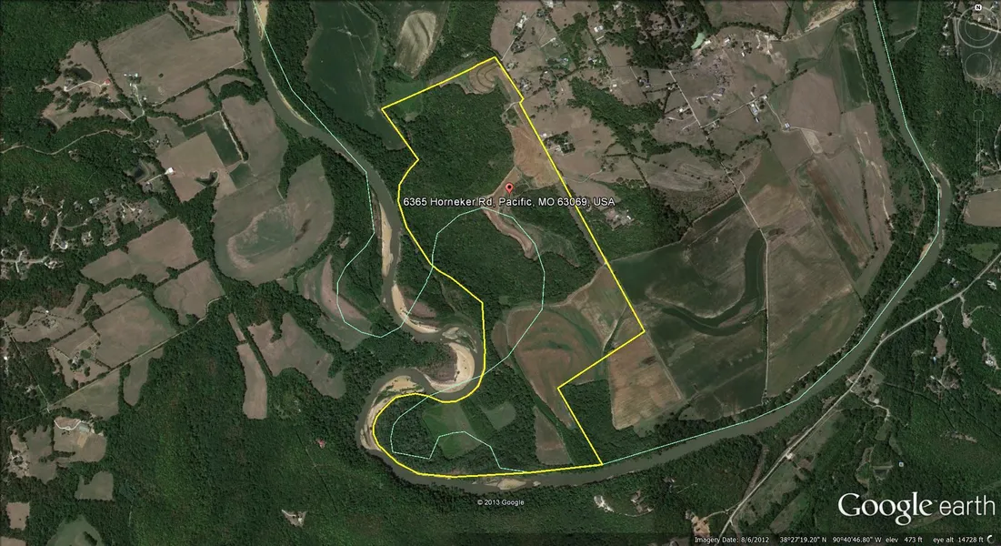 This tract of ground has several views of the Meramec River Valley on one side of the tract and long distance views of the Eureka Bluffs on the other.
