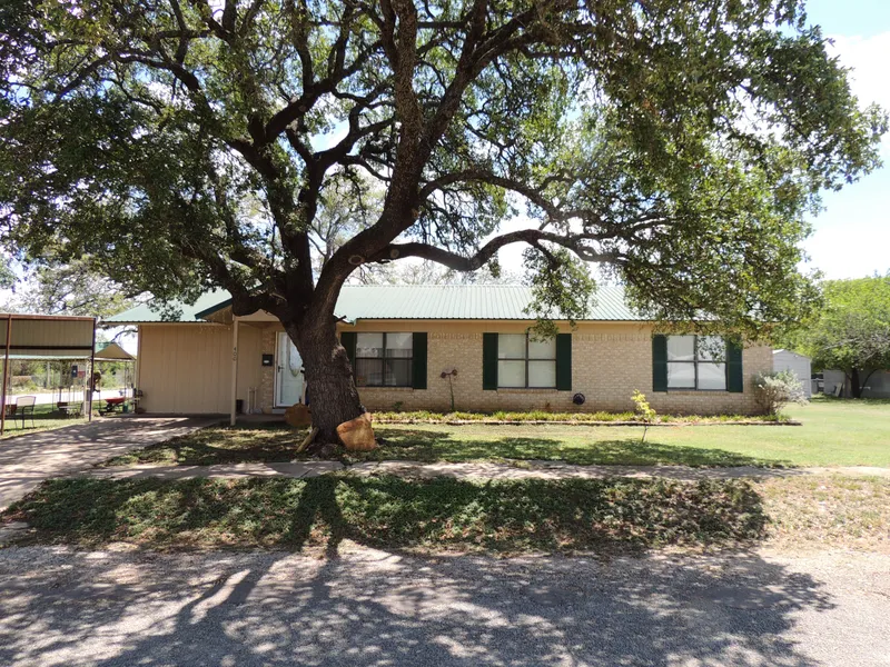 400 E. 5th St.- Large 3/2 brick home on a very big corner lot. The house has CH/CA and a metal roof. Really old unique live oaks frame the home. It also has a large metal garage/shop with automatic door opener, 2 storage buildings, carport and shaded loafing area. Bargain at $119,000