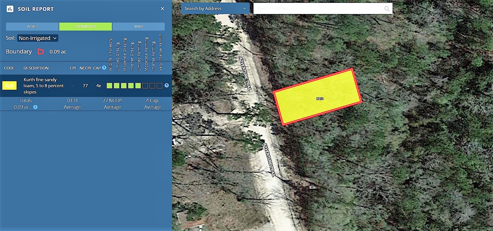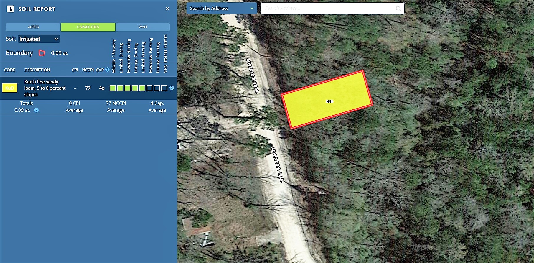 Search for detailed parcel information including; Elevation & Vegetation Maps, Ownership Information, Detailed Parcel Information, Crop History Map, Soil Survey Productivity Data, and more.