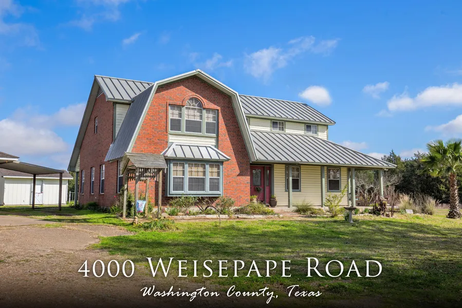 The joy of country living just 5.5 miles from downtown Brenham. Room to roam on 2.85+/- well maintained acres. Custom built 2597sqft home with gambrel metal roof and covered porches front and back to relax on and to enjoy the view of your live stock and the rolling country side. The home has beautiful detailing with wood trim around doors and windows, crown molding, wainscoting, and more. Spacious living area with lots of light, large dining room with pine floors, and kitchen with plenty of counter space, custom cabinets, gas cook top, double oven, pantry with adjustable shelves, and window overlooking the back yard. The master suite is downstairs and the master bath has a charming claw foot tub, separate shower, two sinks, and his and hers closets with built-in dresser. Two large bedrooms upstairs, each with two closets, and lots of natural light. Also, there is a bonus room that can be used for an office, craft room, or additional storage. The property includes an over-sized detached garage, well house, custom dog enclosure, and small barn.