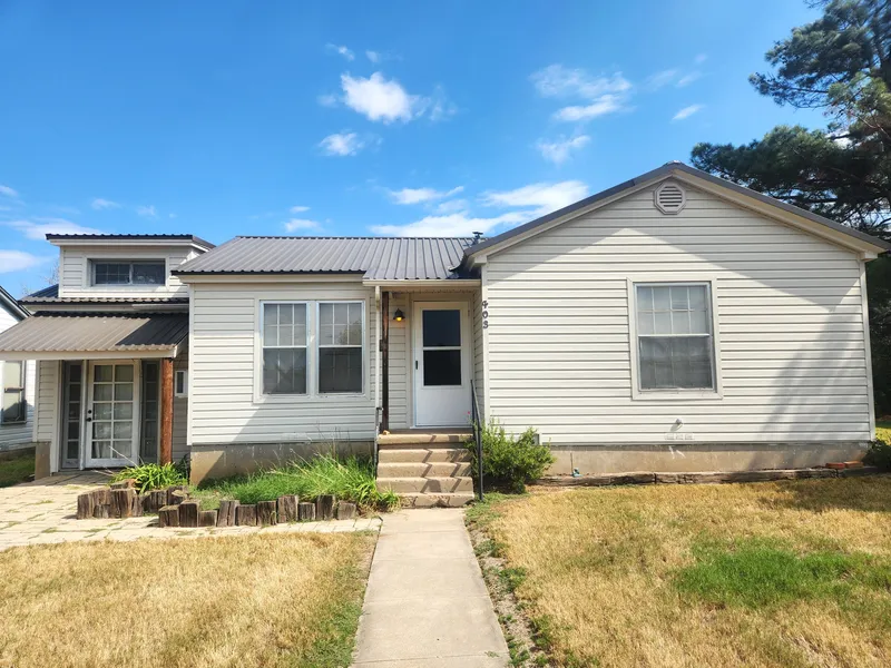 Darling Cottage at 403 E.5th Street in the friendly little town of Clarendon,TX. This cutie has 3/4 bedrooms and one large bathroom. It has beautiful cream colored siding and a metal roof. There is a covered patio
