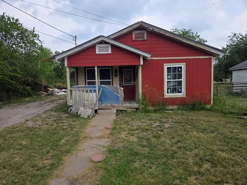 A fixer upper for certain. Work has been started but needs a long way to go. A metal roof and some new paint on part of the exterior. A few new windows.