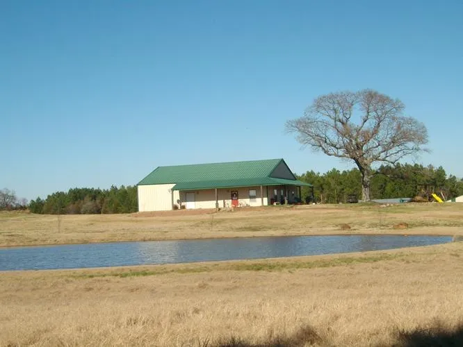4 bedrooms/4 full baths, 3 living areas, laminate floors, huge walk-in pantry, pellet stove. Custom built country/rustic/ranch style home with a loft & 20 foot ceilings in main area. Wrap around porch w/deck. Metal shop w/concrete floor & metal barn. The home is steel framed/metal roofed 50x60 feet. 2 ponds and a creek on land.