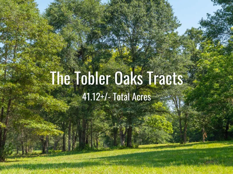 Offered in 2 tracts at Online Public Auction - bidders can bid on their favorite tract, or The Tobler Oaks Tract in its entirety.