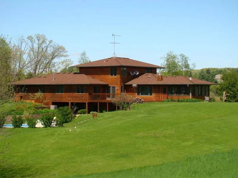 This private 40-acre retreat sits high on a hilltop and has bedrooms and baths on every level, plus an easy, open floor plan that makes entertaining a breeze! This home takes advantage of the views and light with lots of windows to bring the outdoors in. There's a lovely master suite on the upper level with a fireplace, large walk-in closet and luxurious bathroom. The main level has a spacious kitchen, formal dining area, living room, den/office & bedroom/bath plus a guest bath, main-floor laundry & a 3-season porch with woodstove. Downstairs is a big family room with fireplace, 3rd bedroom, bath & walk-out to the in-ground pool. This beautiful home has been gently used and well-maintained! While the home has an attached 2-car garage, there is also a detached 3-4 car garage near the house and a lower garage also used as a workshop. This home is located between Dodgeville and Spring Green, Wis., with all the glorious features of the Wyoming Valley area.