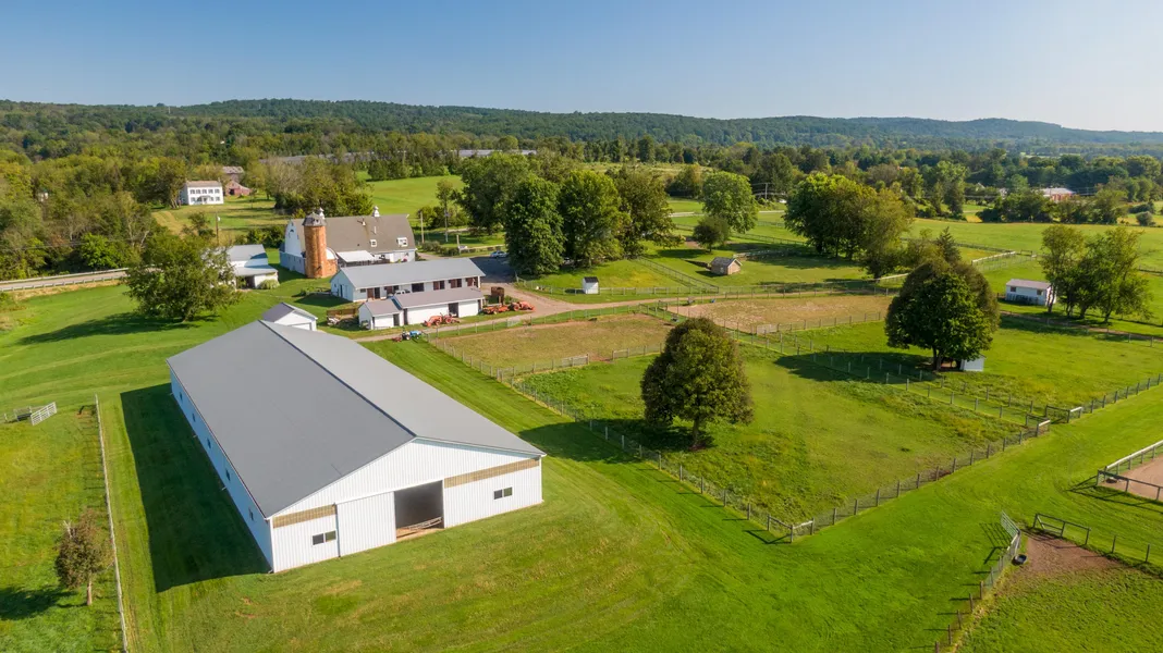 Magnificent, sprawling, preserved equestrian compound which features a 5-bedroom estate house renovated in 2019 with stunning results. The home includes a gourmet kitchen, large rooms with high ceilings, primary suite with beautiful ensuite bathroom and dressing area, wide-plank wood floors, and grand formal entry. The property boasts a 72X180 lighted, indoor area with washed sand footing, 100X200 outdoor arena with sand/stone dust footing, two barns for a total of 16 stalls, wash stall, tack room, 4 run-in sheds, 13 paddocks with no-climb fencing plus acres of harvest hay fields, two caretaker apartments, newly-installed solar panels, and built-in generator. The property is also home to a well-established, very successful veterinary practice which can be repurposed into another business if desired.