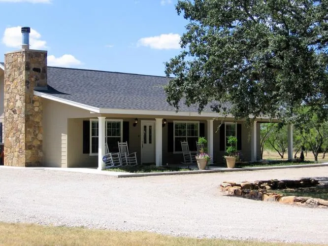 New home (2007) on a 41.91-acre recreational ranch at Lake Brownwood with large flagstone patio that includes a native stone firepit for those fall evenings of relaxing. Home has large covered porches on front and back, 30’x40’ insulated metal barn with rollup door, beautiful rolling terrain with oaks, mesquite, and native Texas brush, deep stock tank, completely fenced for livestock. Boat ramp to lake is ¼ mile from house. You must see to appreciate the seclusion this property provides.