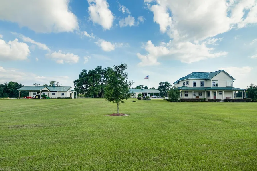 Saddle up in luxury! Picturesque fenced & gated 40+acres with 3 beautiful Oak hammocks, citrus, fruit, blueberries & grapes. Main house, second house with full kitchen, laundry, workshop & 4 car parking with RV hook-up & sewer access, 6 stall barn with automatic waters, AC tack rm, summer barn, horse run out, pastures with Centaur fencing, arena with water & harrow, oyster & fire pit & hay farming. All Morton buildings. Main house has gourmet kitchen with s/s, granite, island with 2nd sink, Jenn-Air gas range. Kitchen opens to great room with gas fireplace. Pecan wood floors & rod iron staircase with panoramic views of property; travertine. T-1 line for Wi-Fi to house. Generator. Save money with hay & seed production. Live in the country & work in Gainesville with short commute.